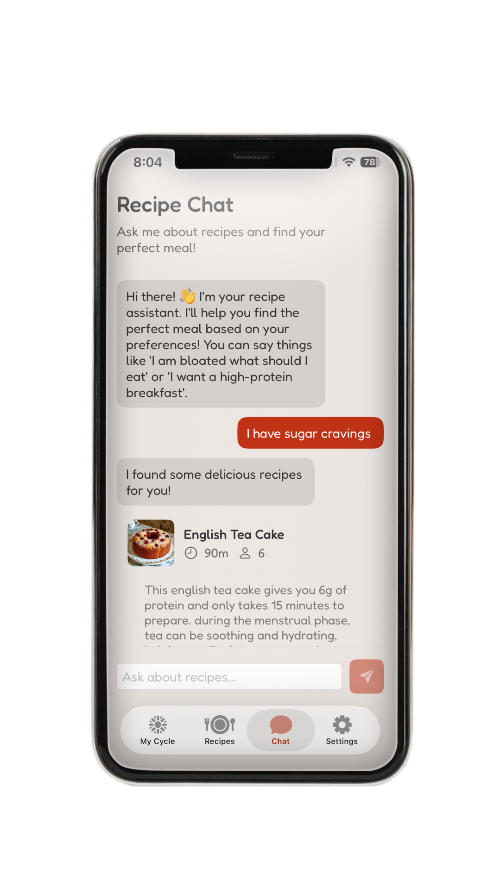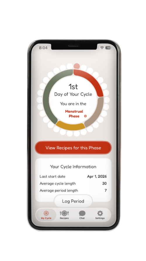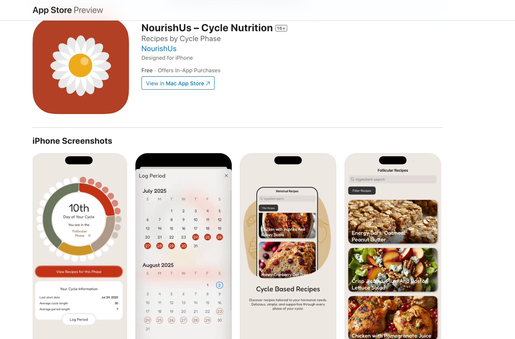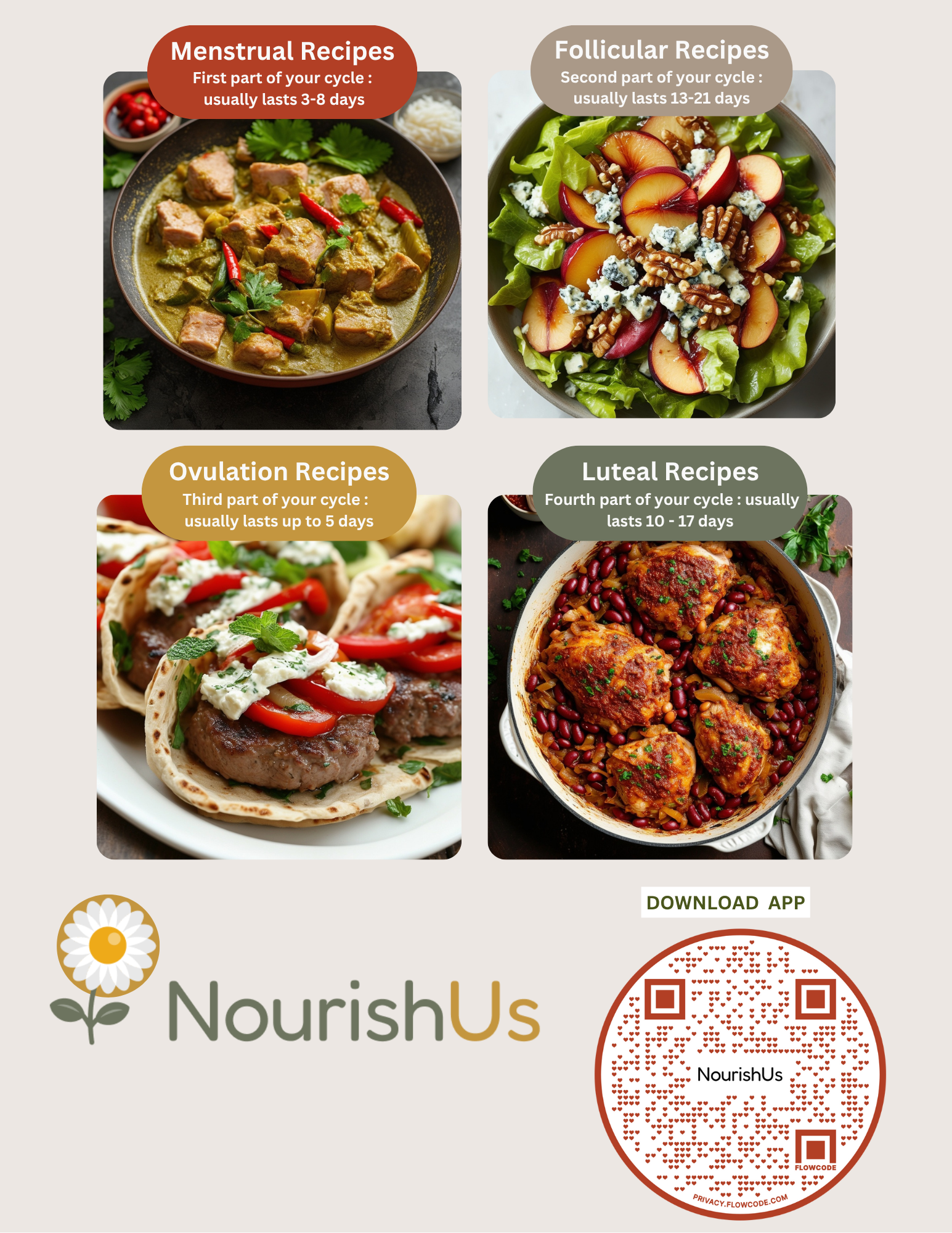 NourishUs is an iOs app crafted by a small but passionate team dedicated to supporting menstrual health through personalized nutrition. By tracking your cycle phase : menstrual, follicular, ovulatory, or luteal; the app provides tailored recipes to meet your body's specific needs at each stage.